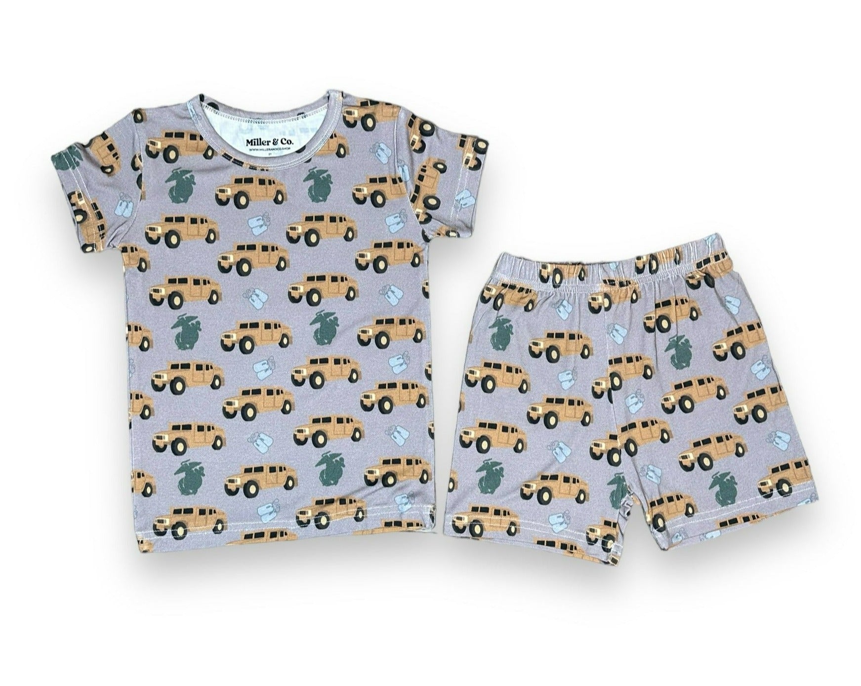 Bamboo two piece short sleeve & shorts pajama set, humvee marines