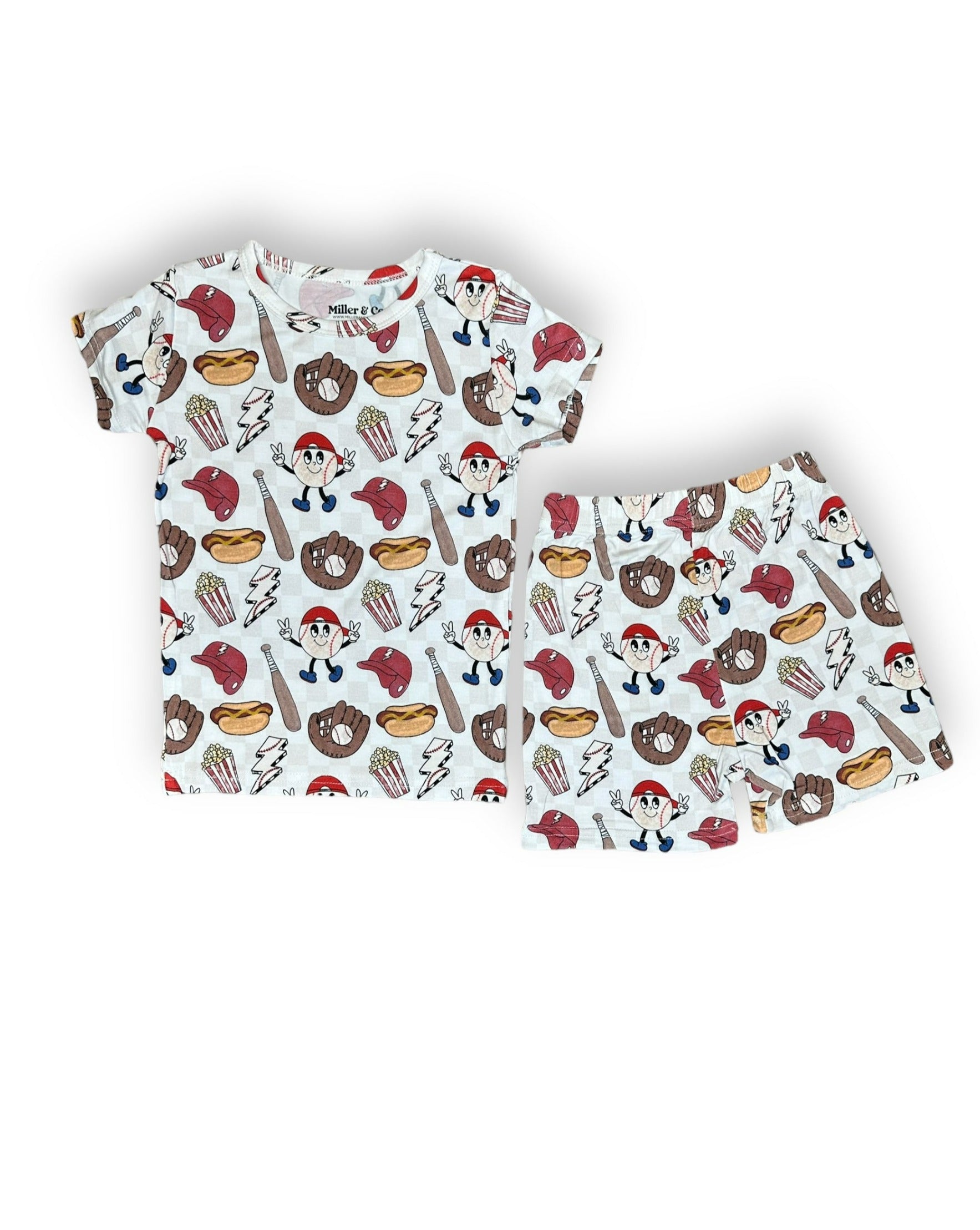 Bamboo two piece short sleeve & shorts pajama set, baseball