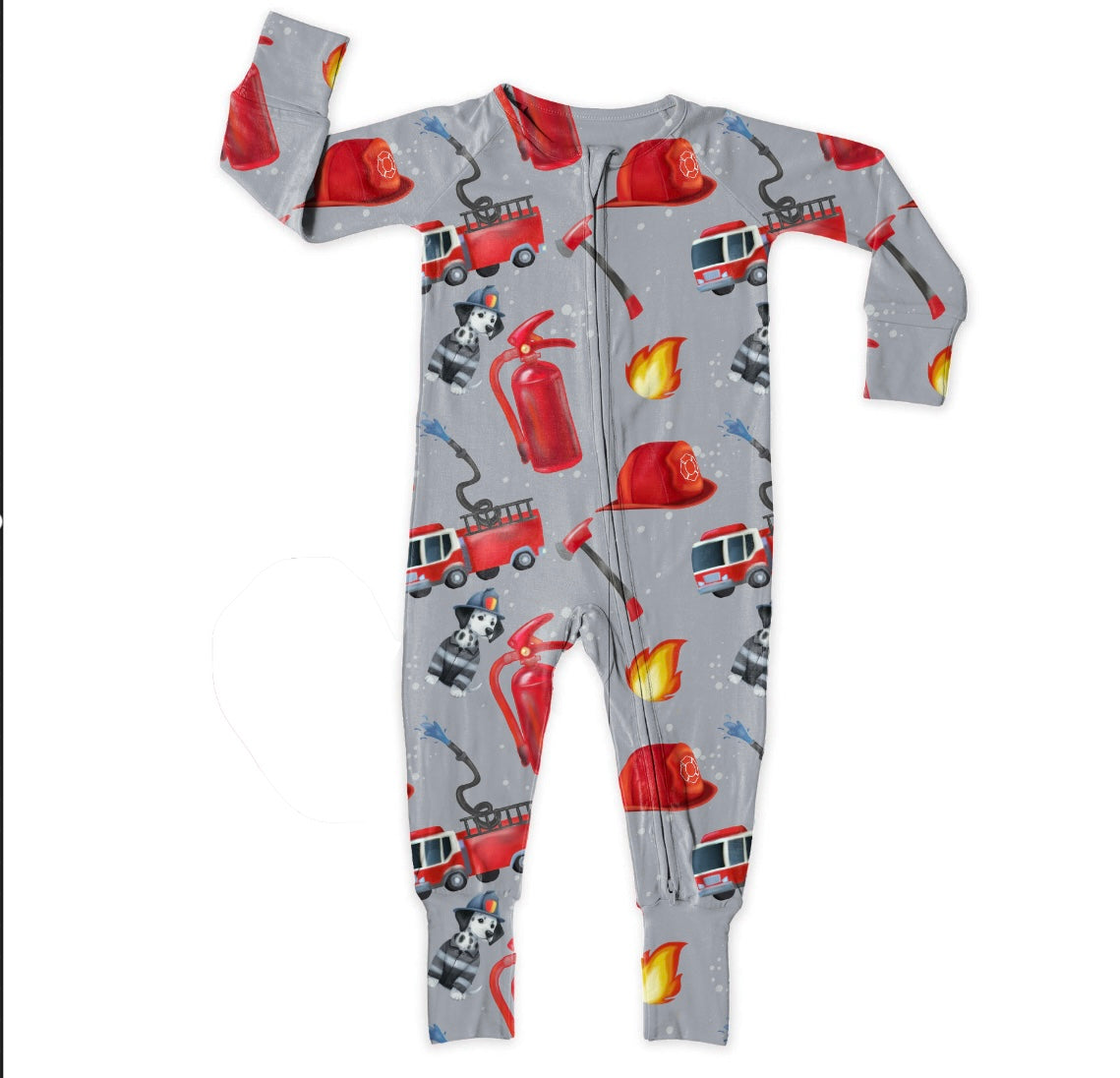 Firefighting dalmatian, bamboo zipper footie